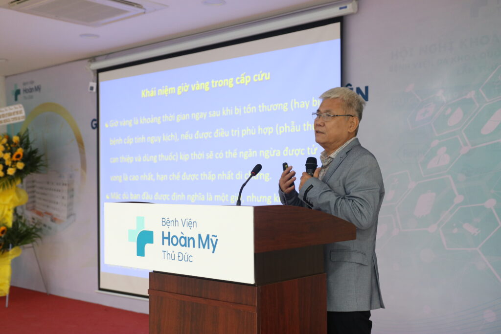 Sáng ngày 26/05/2023, Bệnh viện đa khoa Quốc Tế Hoàn Mỹ Thủ Đức tổ chức Hội thảo “Giờ vàng trong cấp cứu trước viện”, mang đến 6 đề tài hữu ích, thu hút sự tham gia và thảo luận báo cáo viên là chuyên gia đầu ngành, các bác sĩ chuyên ngành Hồi sức Cấp cứu công tác tại Bệnh viện đa khoa Quốc Tế Hoàn Mỹ Thủ Đức và các cơ sở y tế trong khu vực.
