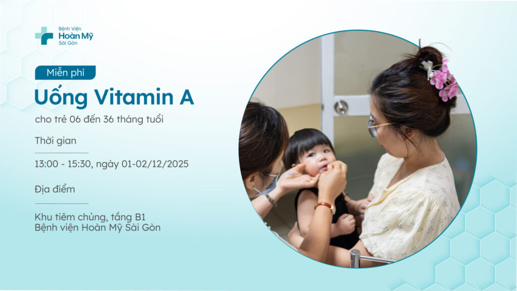 Đồng hành cùng phụ huynh trong việc chăm sóc sức khỏe trẻ nhỏ và hưởng ứng chương trình bổ sung Vitamin A hằng năm của Bộ Y tế, Bệnh viện Hoàn Mỹ Sài Gòn triển khai Chương trình Uống Vitamin A miễn phí dành cho trẻ từ 06 – 36 tháng tuổi.