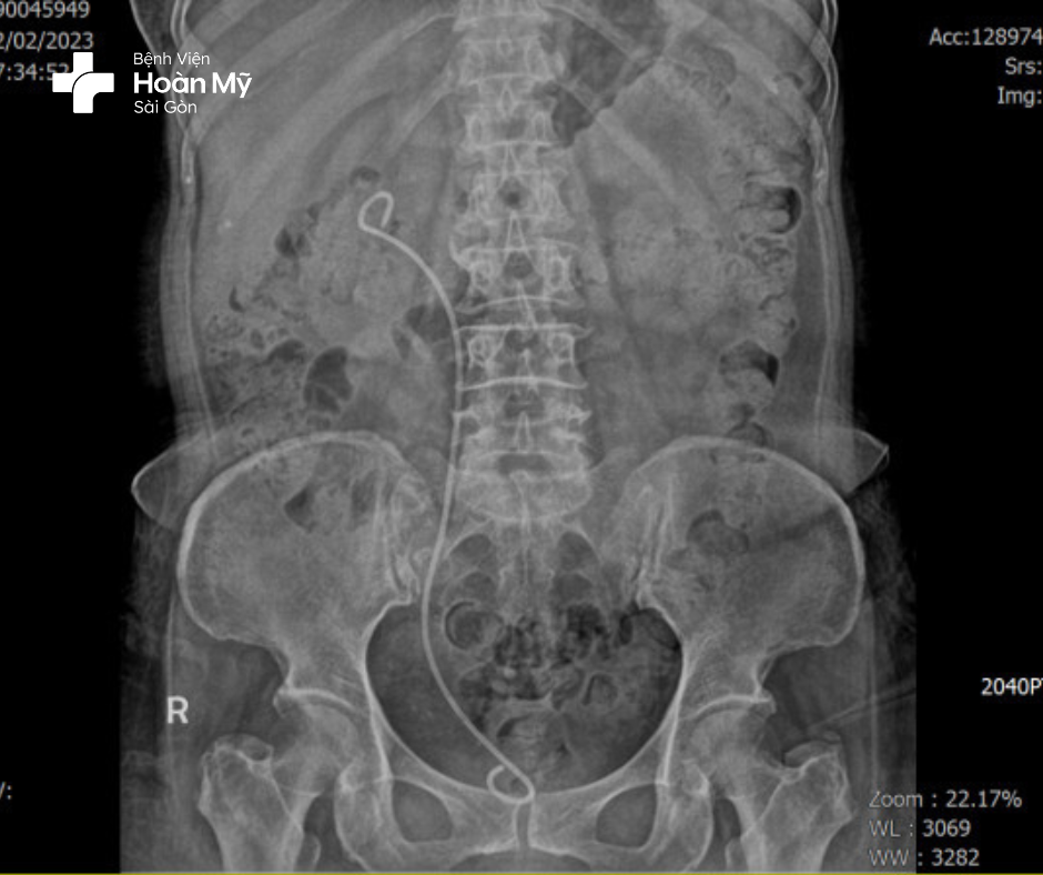 Người bệnh lập tức được chuyển đến hoa Hồi sức tích cực để điều trị và được tiến hành hội chẩn toàn viện để phẫu thuật giải quyết tình trạng tắc nghẽn do sỏi bằng phương pháp đặt sonde JJ niệu quản phải.