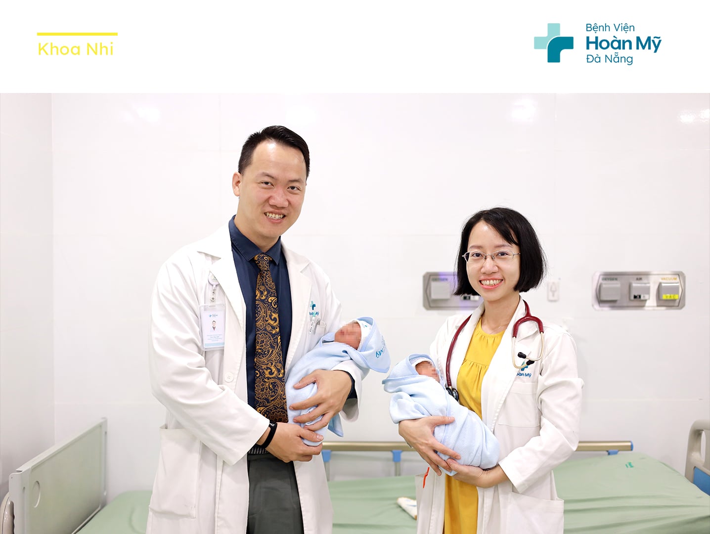 Cặp song sinh non tháng 34 tuần bị suy hô hấp sau sinh đã được các bác sĩ Bệnh viện Hoàn Mỹ Đà Nẵng kịp thời cứu sống và nuôi dưỡng thành công, mang lại niềm vui cho sản phụ và gia đình.