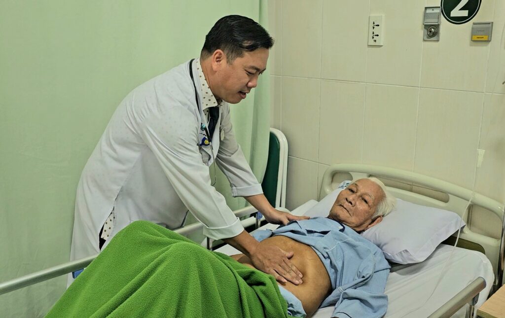 Cụ ông H. H. N. (84 tuổi, địa chỉ tại huyện Cầu Kè, tỉnh Trà Vinh) nhập viện vì đau bụng và sốt cao liên tục. Thông tin từ gia đình, cụ ông ở nhà đau bụng khoảng 1 ngày kèm sốt lạnh run, vàng mắt, gia đình đã đi mua thuốc cho cụ ông uống nhưng không giảm nên vào cấp cứu Bệnh viện Hoàn Mỹ Cửu Long.