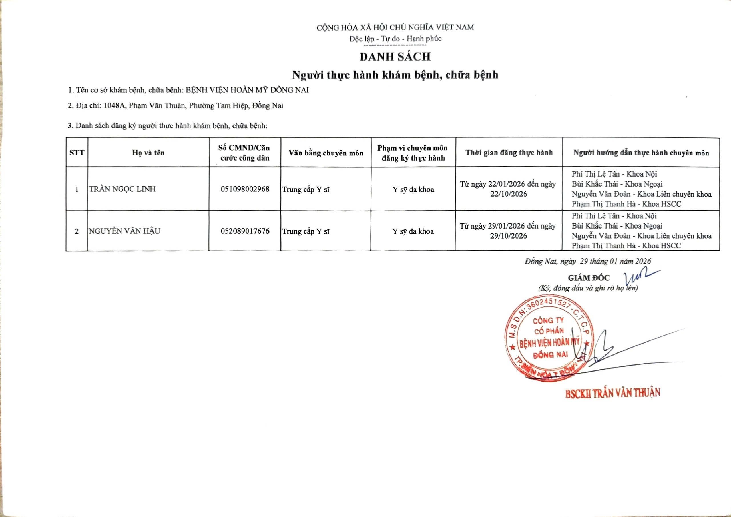 Danh sách người thực hành khám bệnh chữa bệnh tháng 01/2026. Chi tiết xem tại đây
