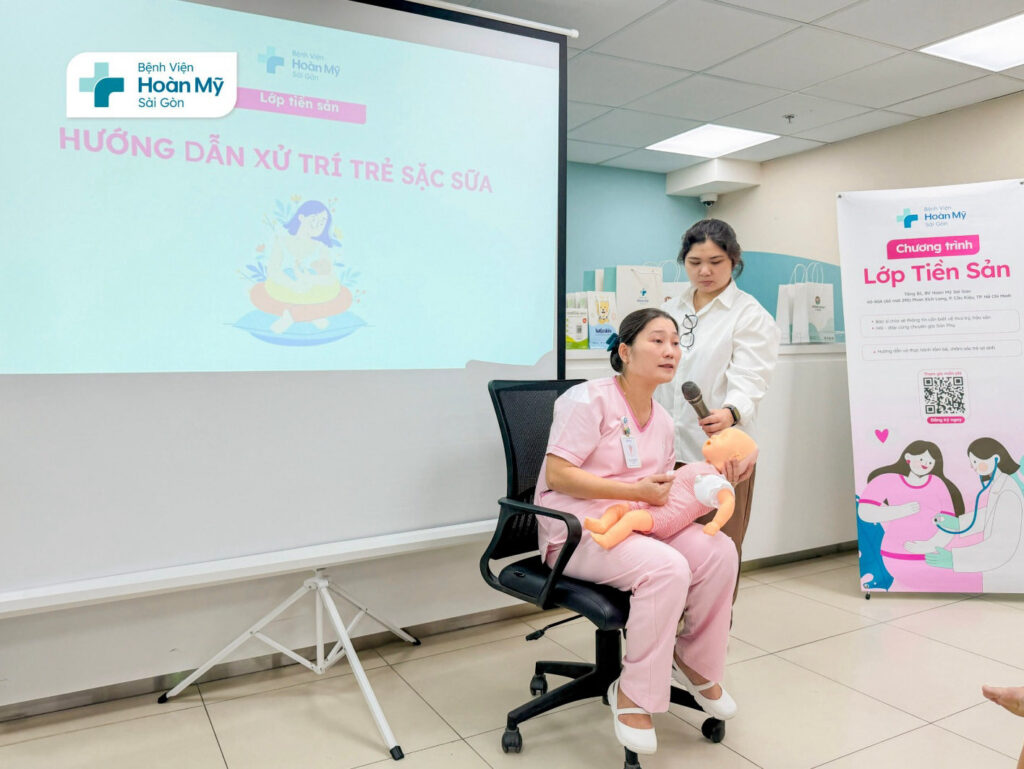 Recently, Hoan My Sai Gon Hospital organized an antenatal class with the theme “Breast Milk Nutrition and Newborn Skin Care,” attracting the participation of many expectant mothers and their family members. The session took place in a lively atmosphere with hands-on activities, direct discussions, and professional Q&A sessions led by Obstetrics and Pediatrics doctors.