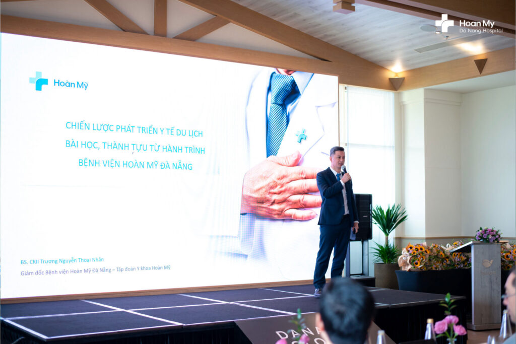 Representing Hoan My Da Nang Hospital, Dr. Truong Nguyen Thoai Nhan, Specialist Level II, General Manager, delivered an in-depth presentation on medical tourism development strategies, key lessons learned, and the hospital’s achievements across more than 20 years of growth.
