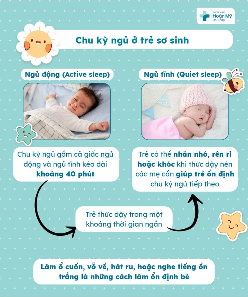 Ở trẻ sơ sinh có hai loại ngủ: ngủ động (active sleep) và ngủ tĩnh (quiet sleep)