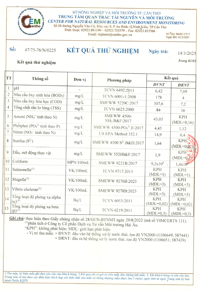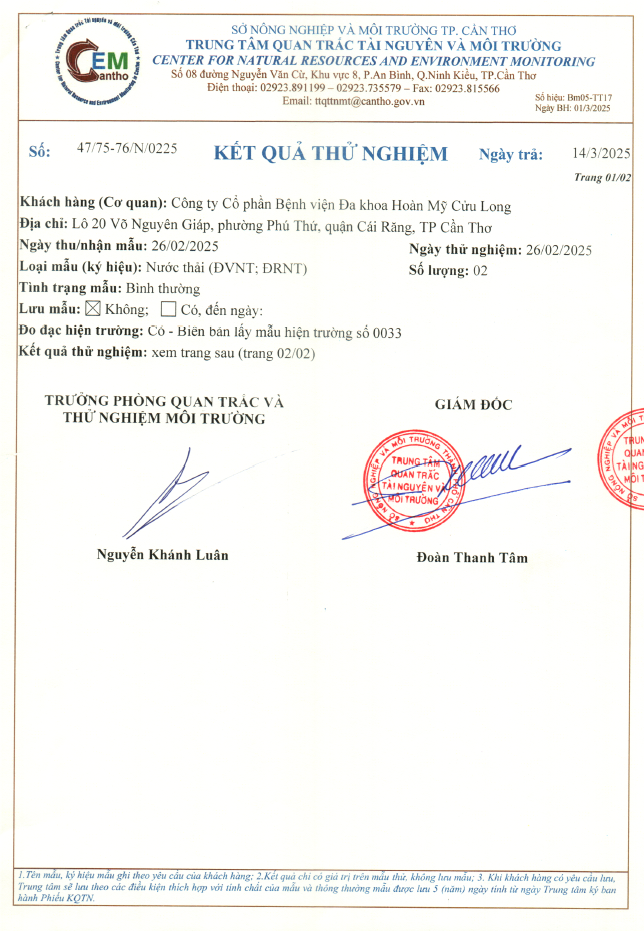 Kết quả quan trắc học quý I – 2025 – Bệnh viện Hoàn Mỹ Cửu Long