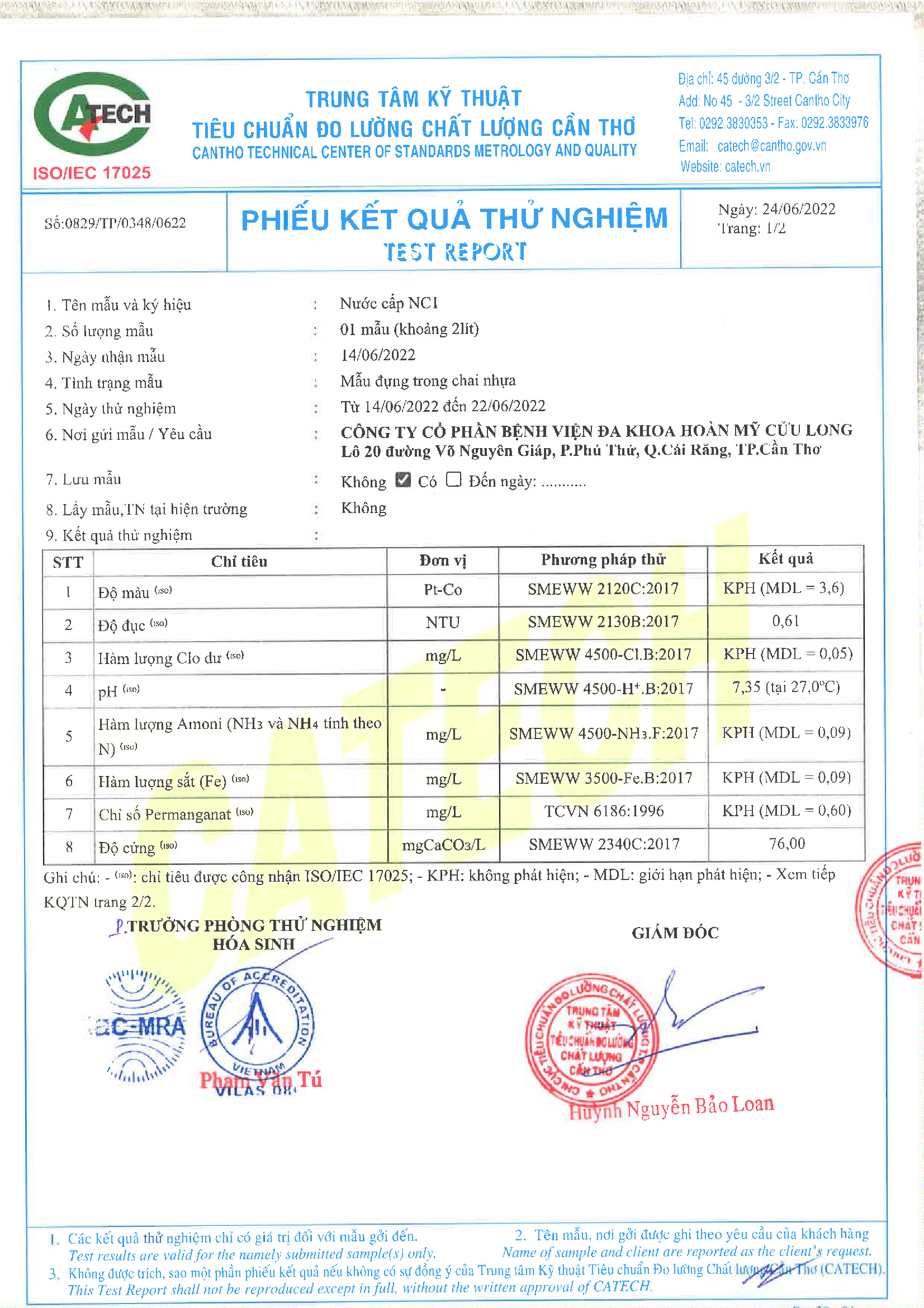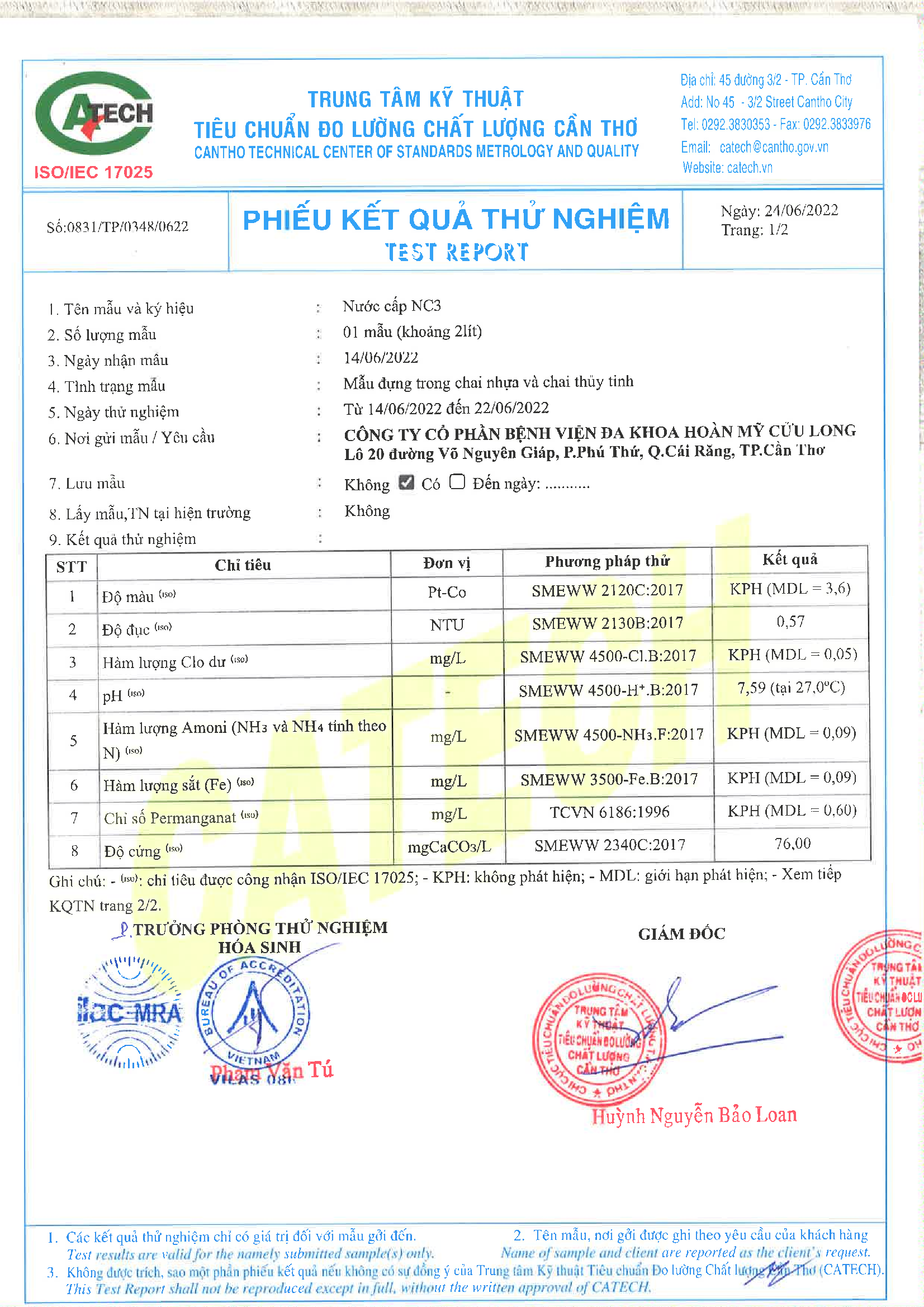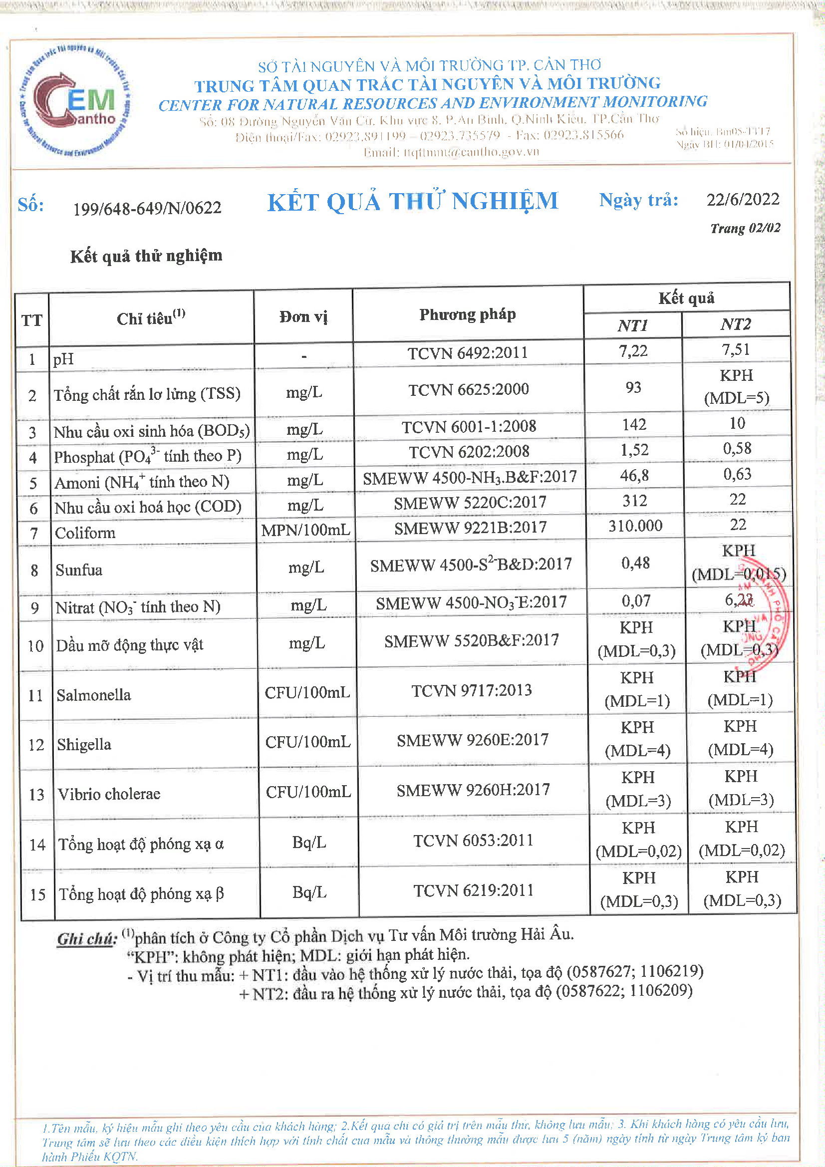 Kết quả quan trắc học quý II – 2022 Bệnh viện Hoàn Mỹ Cửu Long