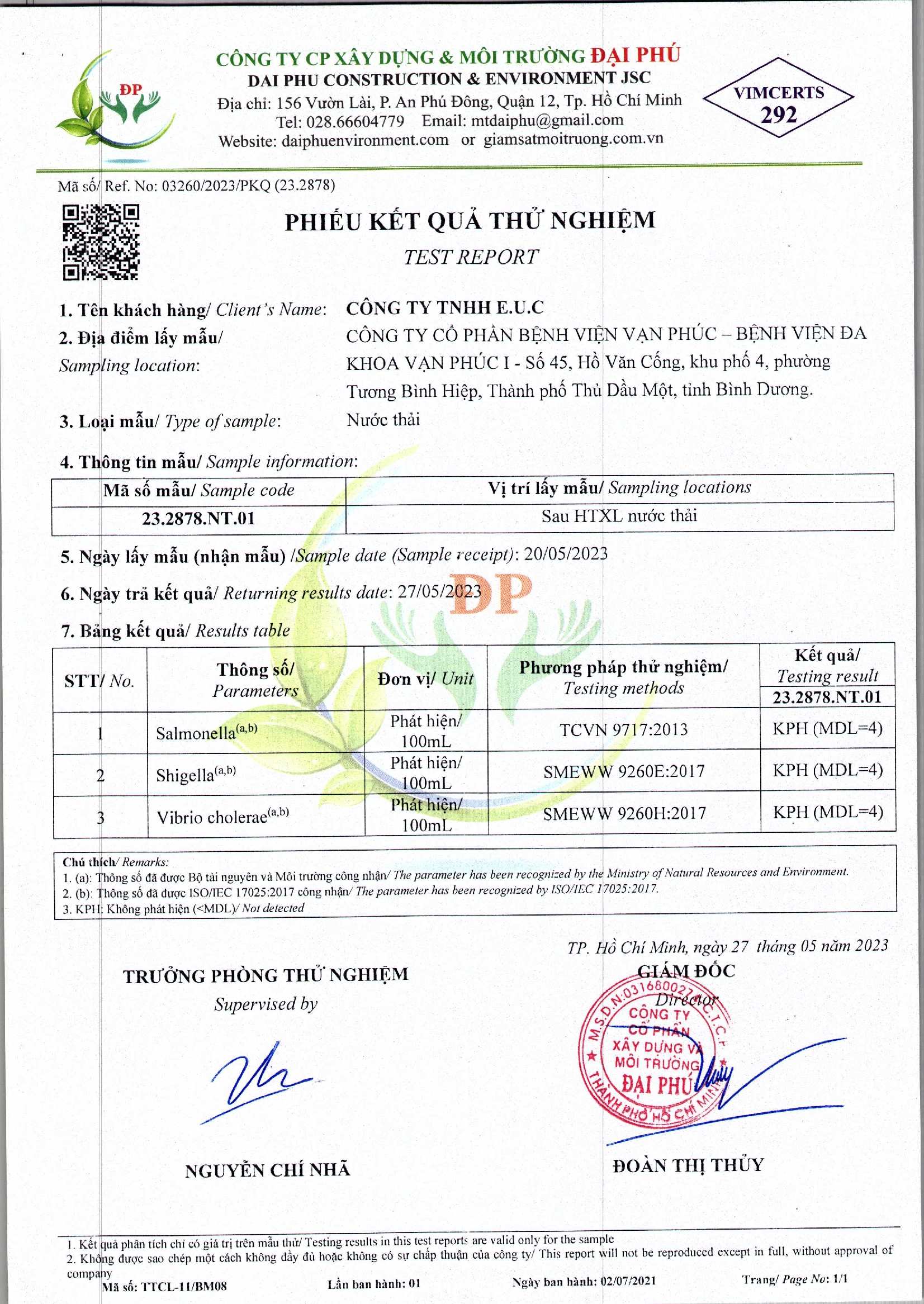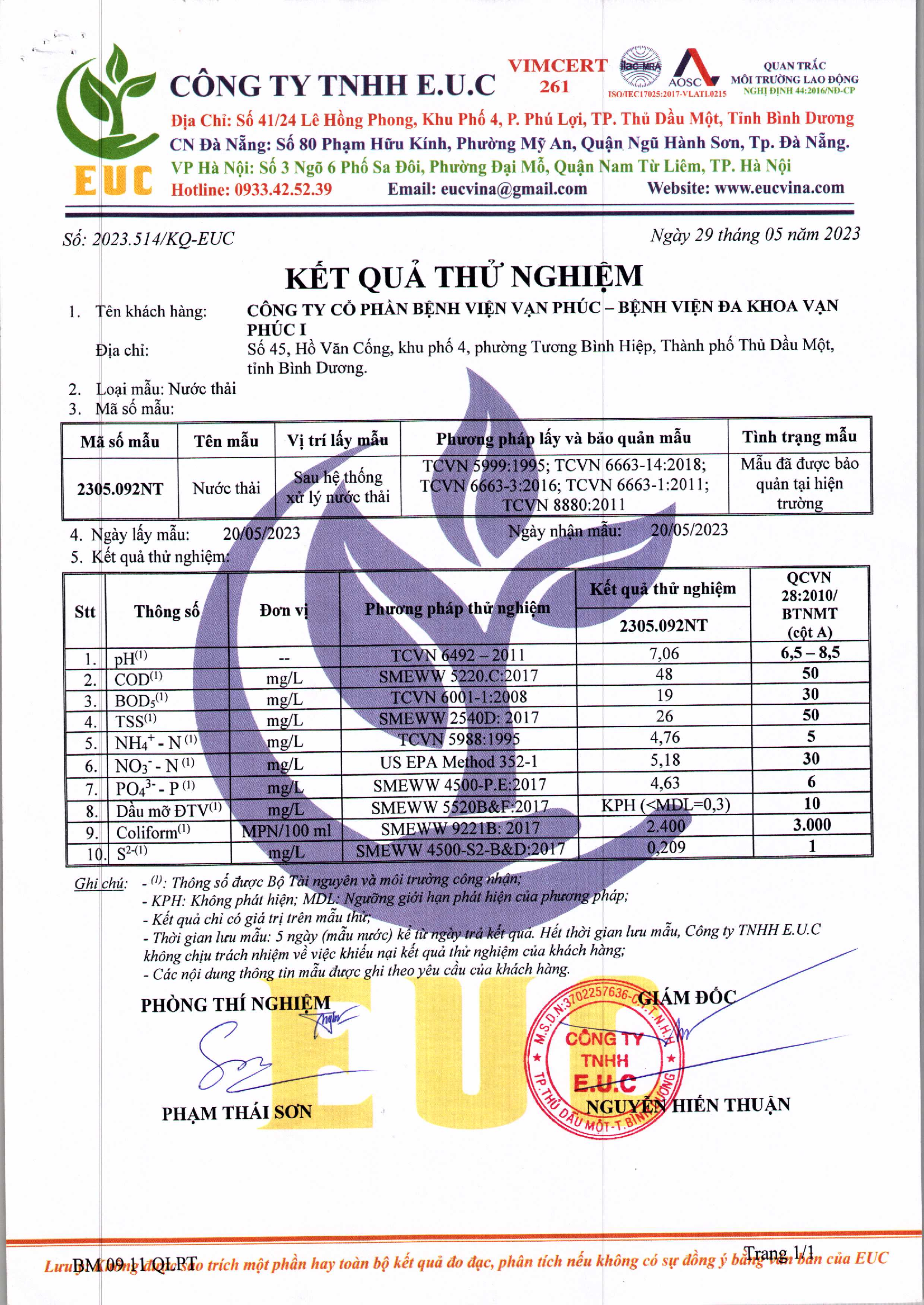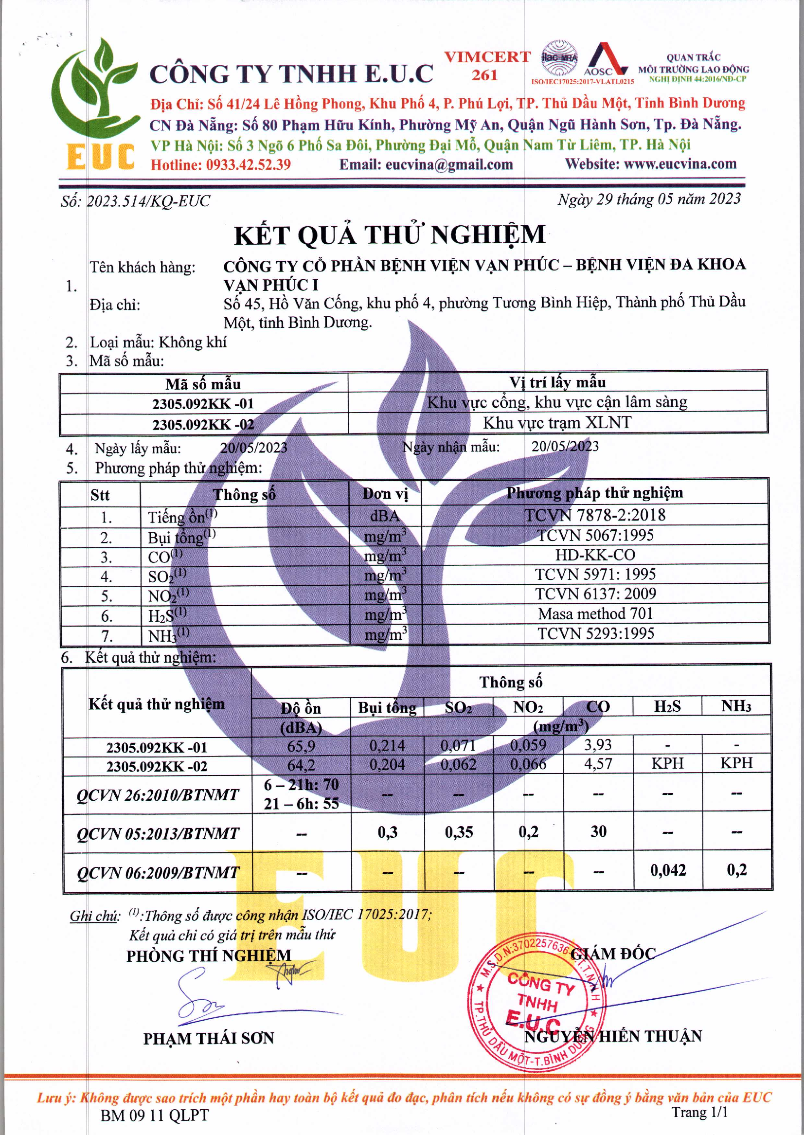 Kết quả quan trắc học quý II – 2023 Bệnh viện Hoàn Mỹ Bình Dương