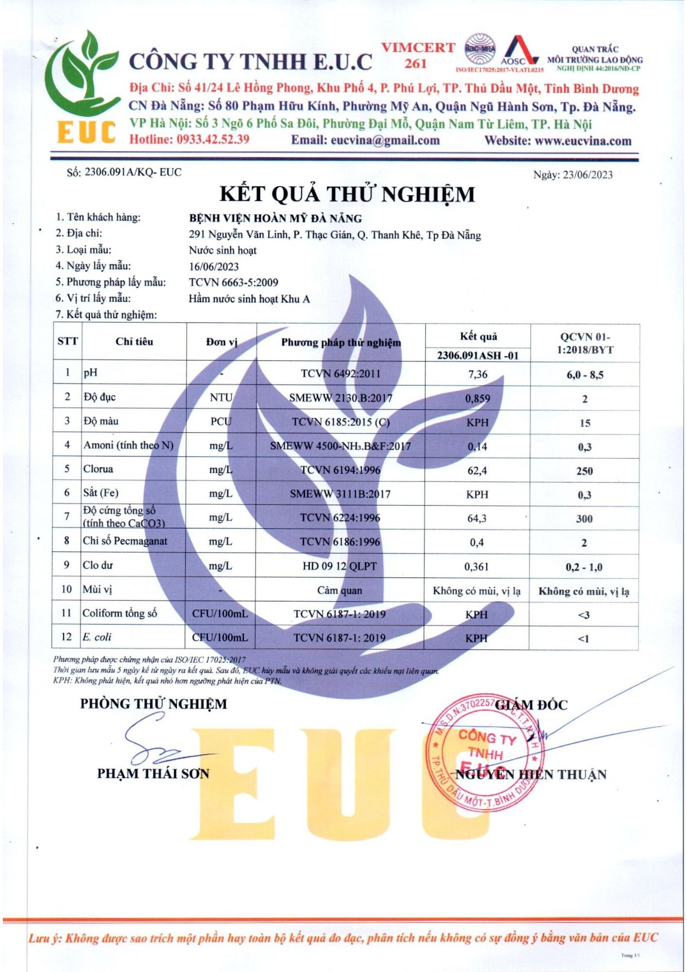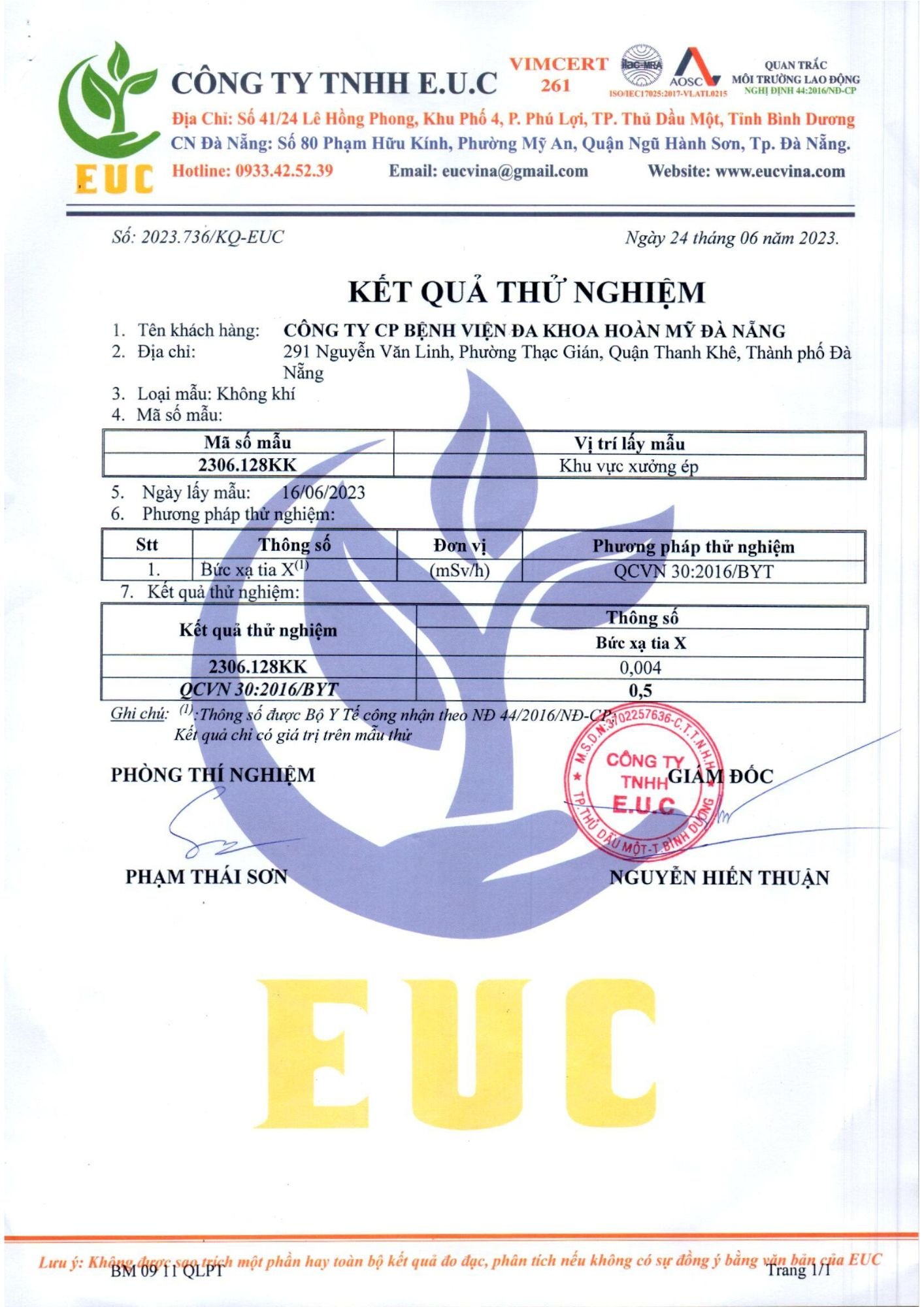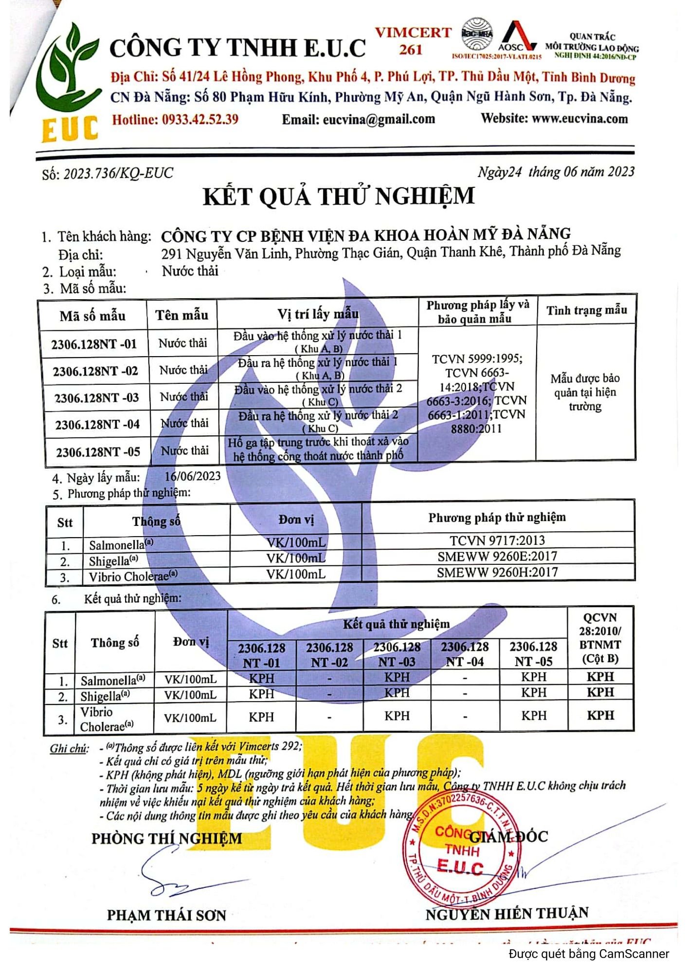 Kết quả quan trắc học quý II – 2023 Bệnh viện Hoàn Mỹ Đà Nẵng