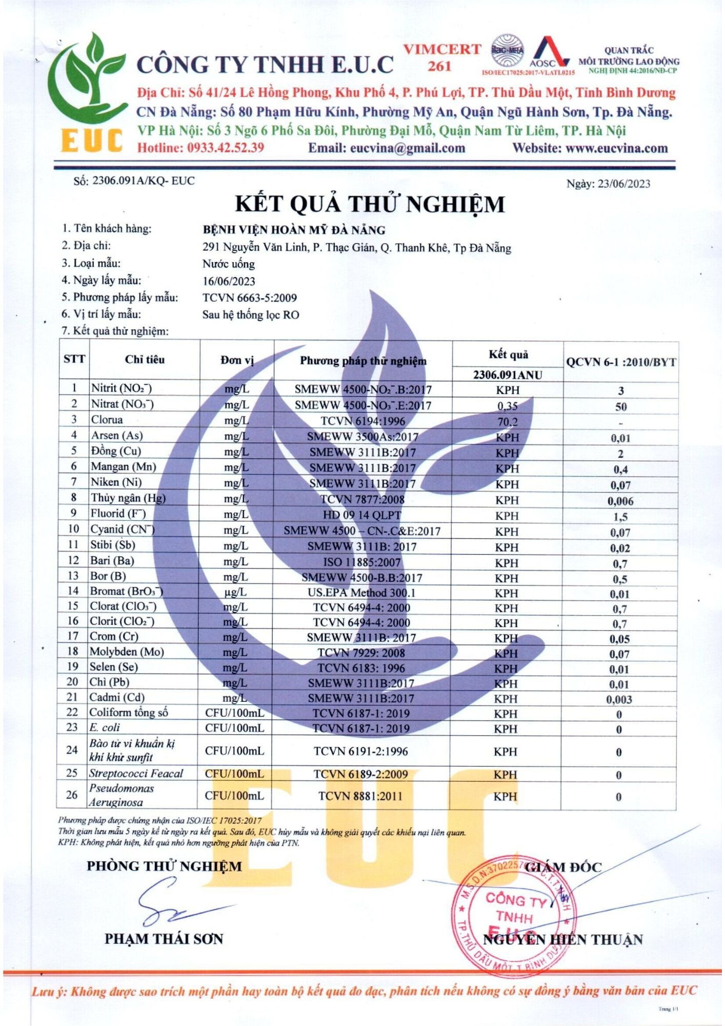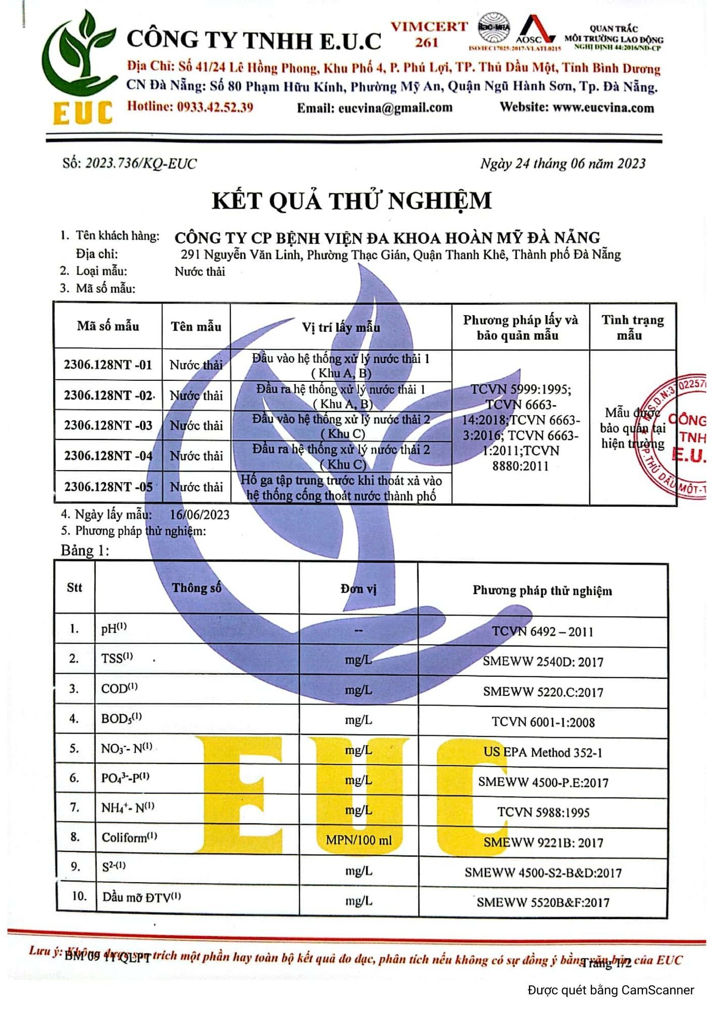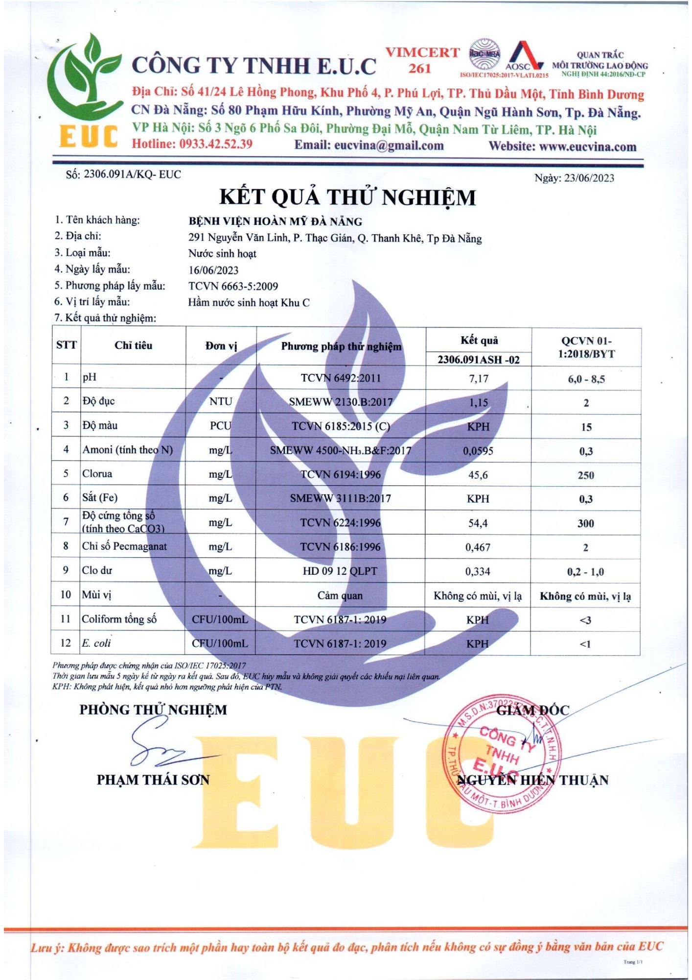 Kết quả quan trắc học quý II – 2023 Bệnh viện Hoàn Mỹ Đà Nẵng