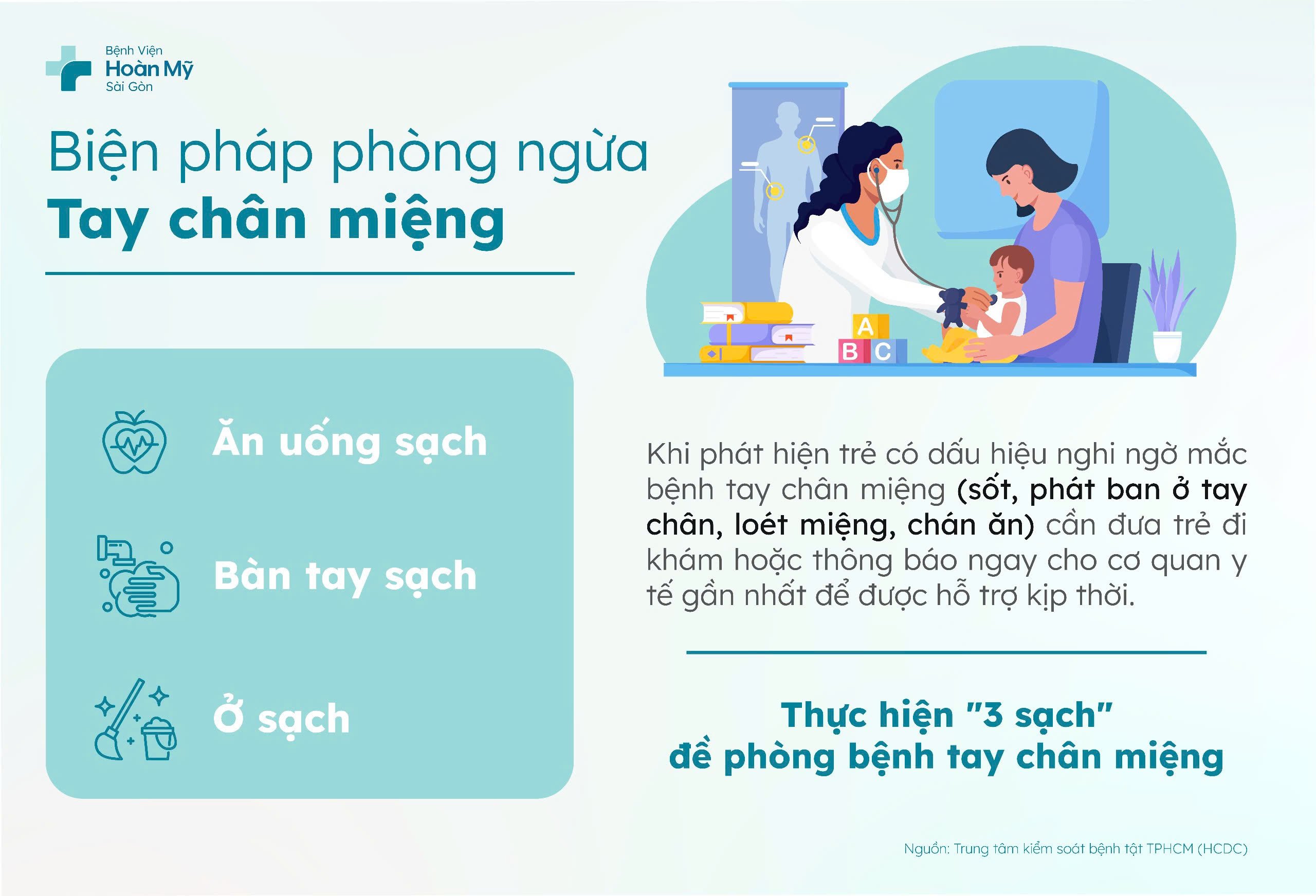 Bệnh tay chân miệng phổ biến nhưng nếu nắm vững dấu hiệu nhận biết, đường lây truyền, chăm sóc tại nhà và phòng ngừa, phụ huynh hoàn toàn có thể bảo vệ sức khỏe cho trẻ. Việc tái khám và tư vấn kịp thời tại các cơ sở y tế uy tín là bước quan trọng để đảm bảo an toàn cho trẻ, tránh biến chứng nặng và hỗ trợ trẻ hồi phục nhanh hơn, đồng thời giảm nguy cơ lây bệnh cho trẻ khác.